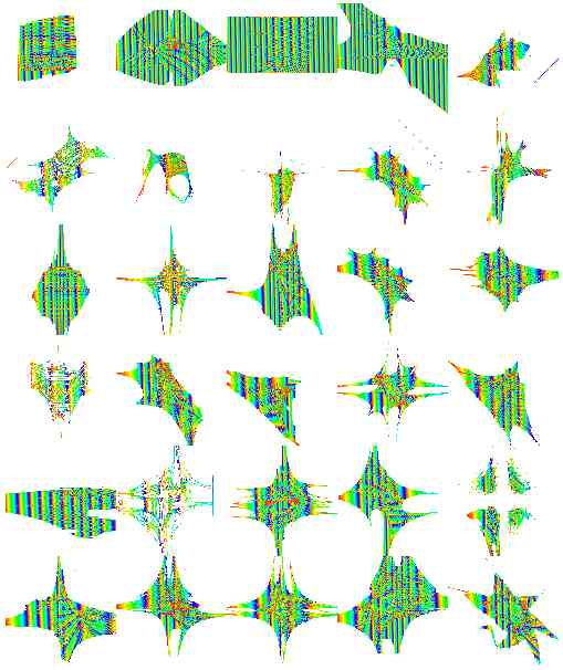 Here you can see the whole dynamical systems data base ordered.To limit the number of jpeg images to 12, I have taken 1 dynamical system every 100.